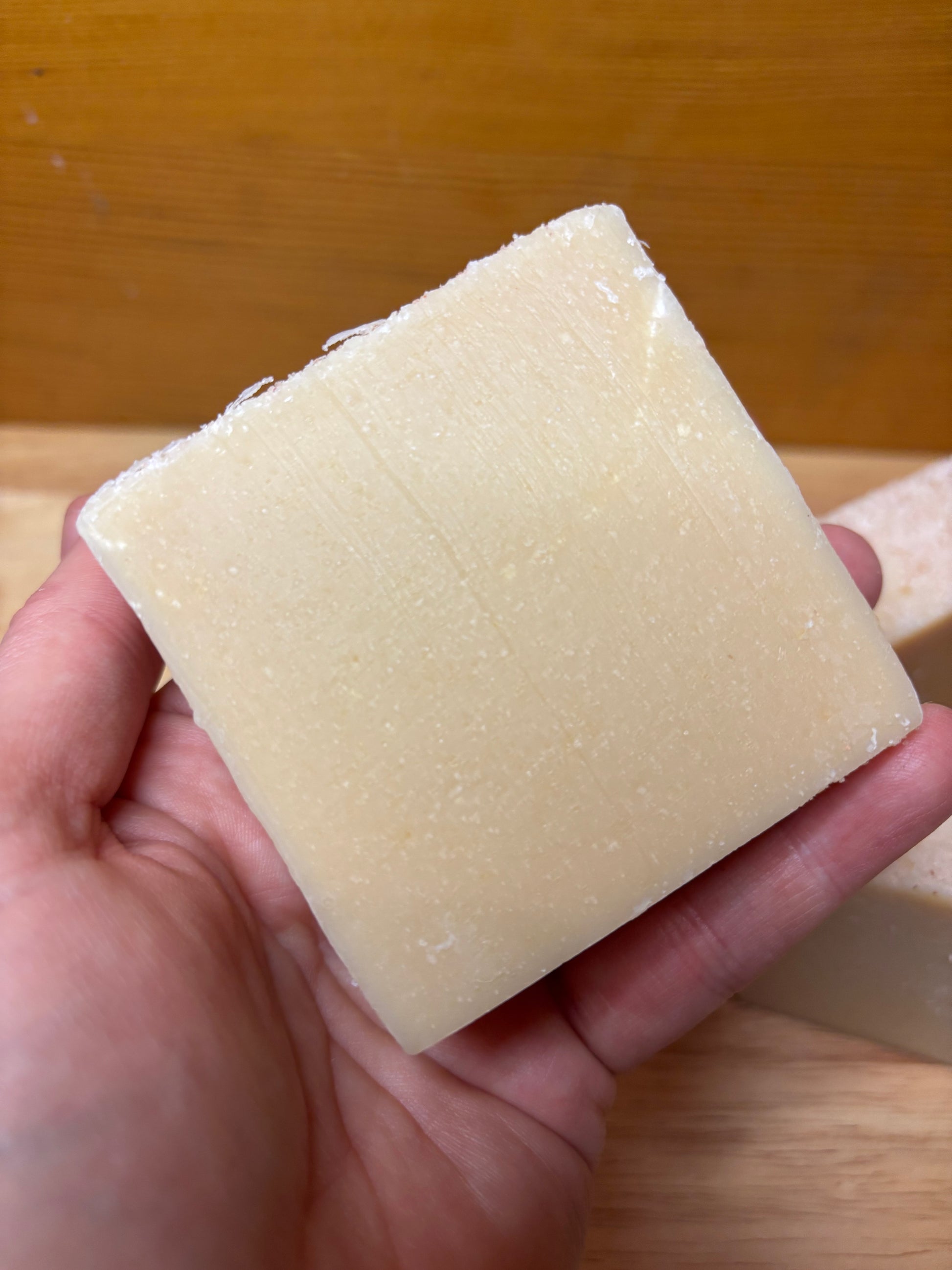 Lye (Sodium Hydroxide) - Soap is the end product of mixing fats with lye, without lye its not soap! The Saponification process converts the fats to a water-soluble cleansing substance. Don't worry, my soaps have all cured for over 30 days to ensure lye is fully neutralized. Cure Date is December 23