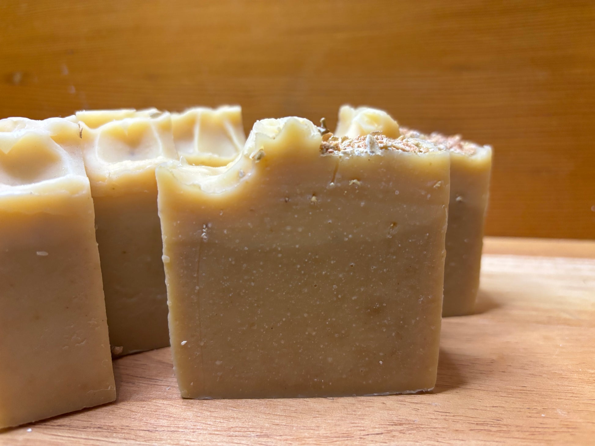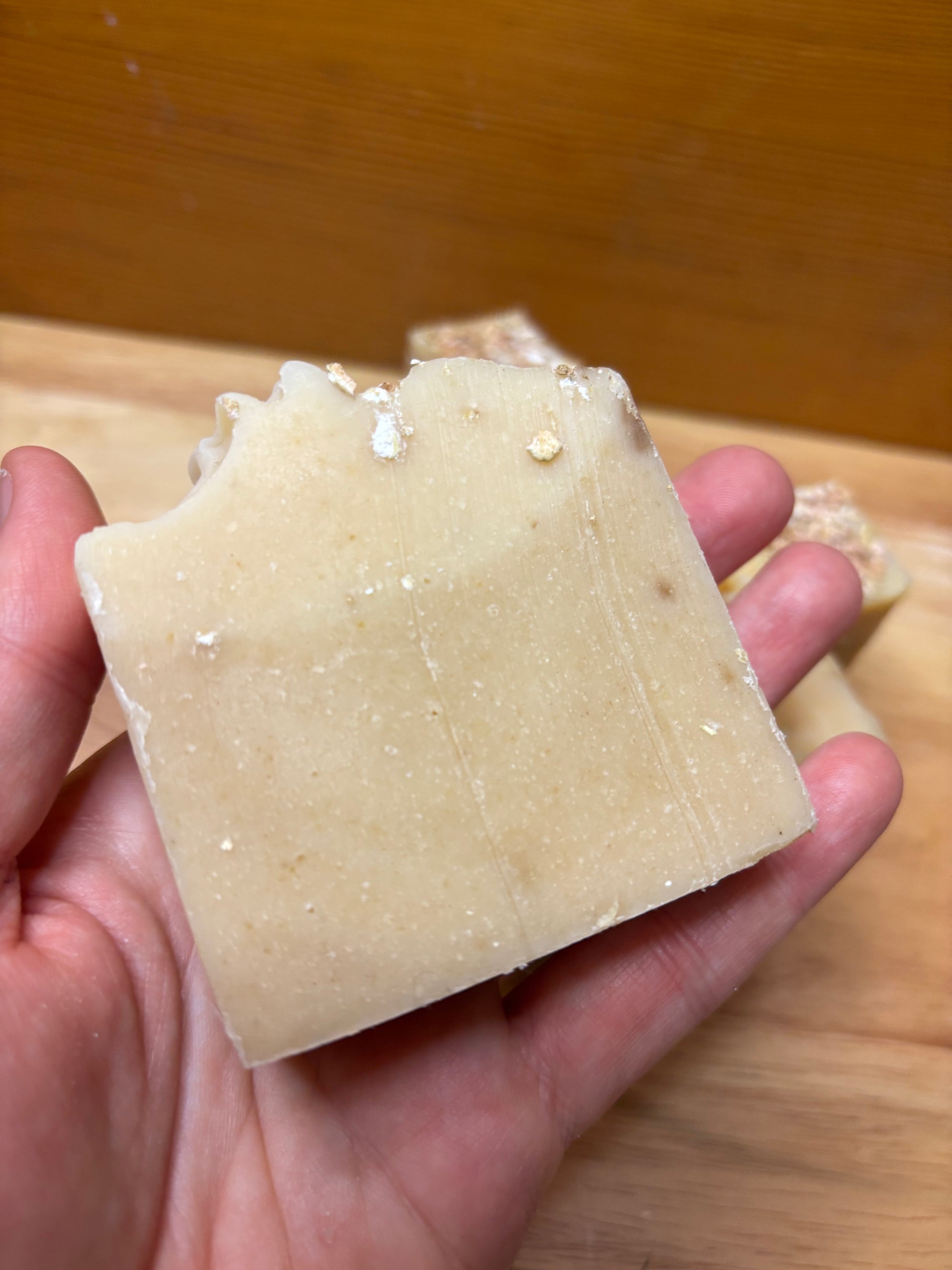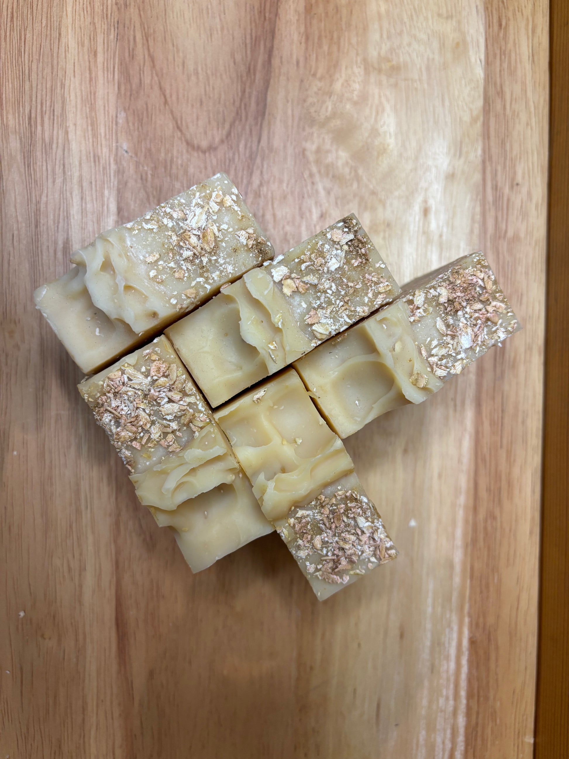 Made with nourishing goats' milk from my Mama Goats- Bubbles & Ginger*. Goats milk is naturally Homogenized and has smaller fat globules making it more easily digestible by all mammals... but that's not where the benefits end. (I'm not a dermatologist)