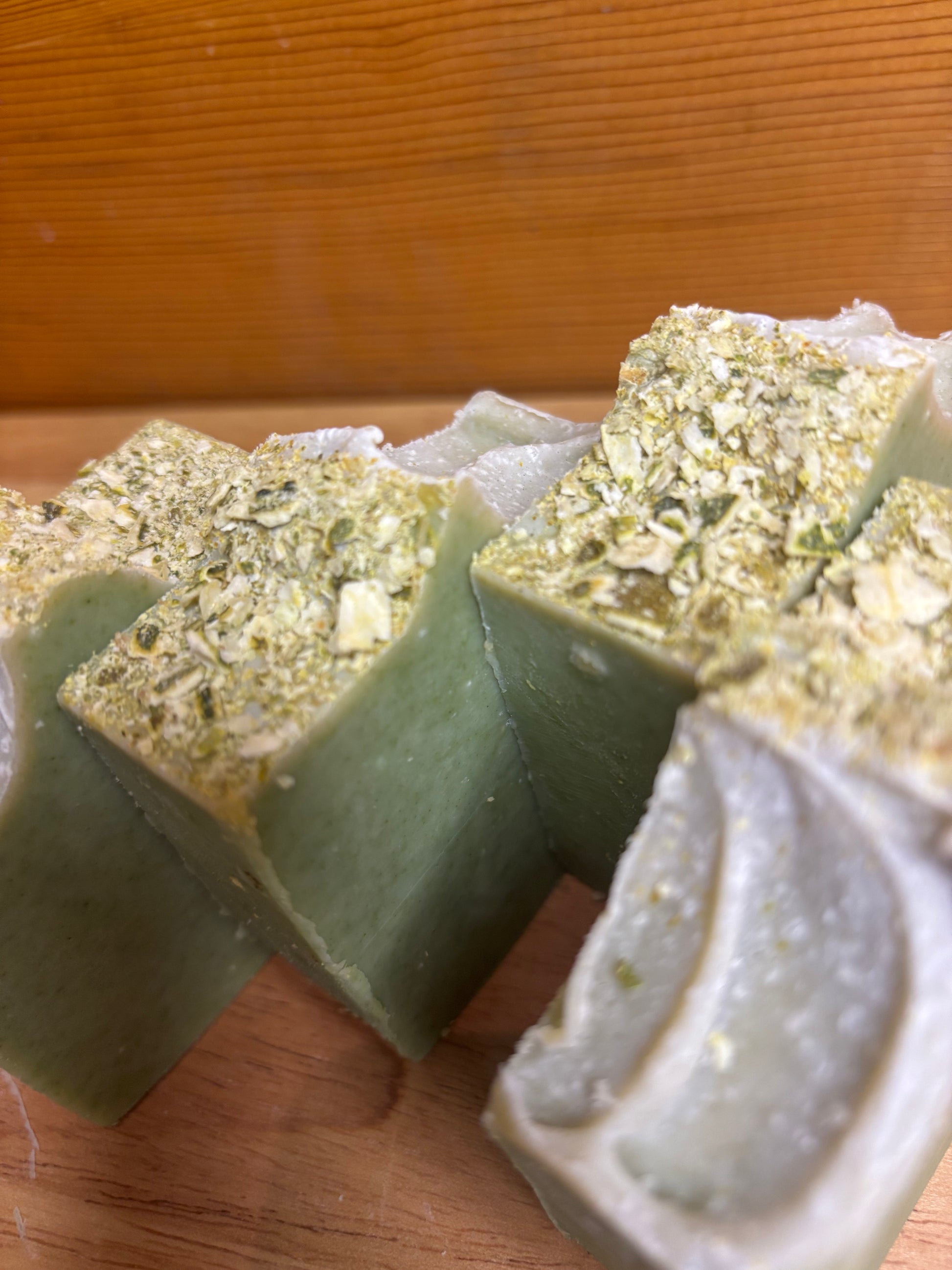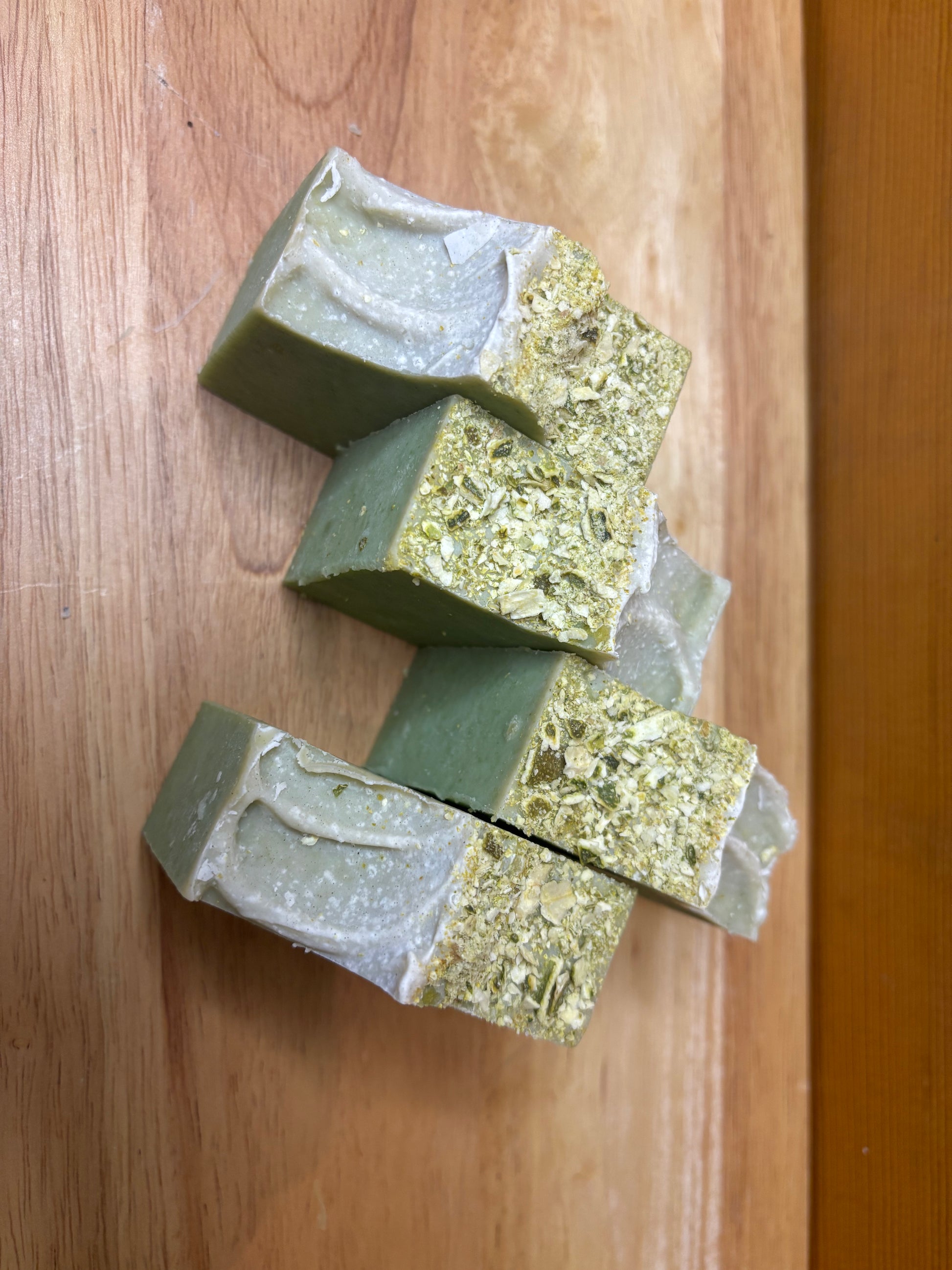 Made with nourishing goats' milk from my Mama Goats- Bubbles & Ginger*. Goats milk is naturally Homogenized and has smaller fat globules making it more easily digestible by all mammals... but that's not where the benefits end. (I'm not a dermatologist)