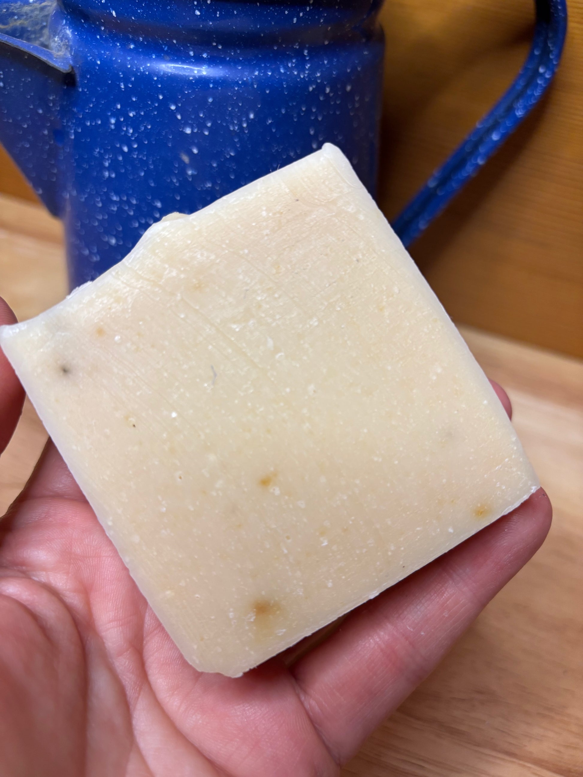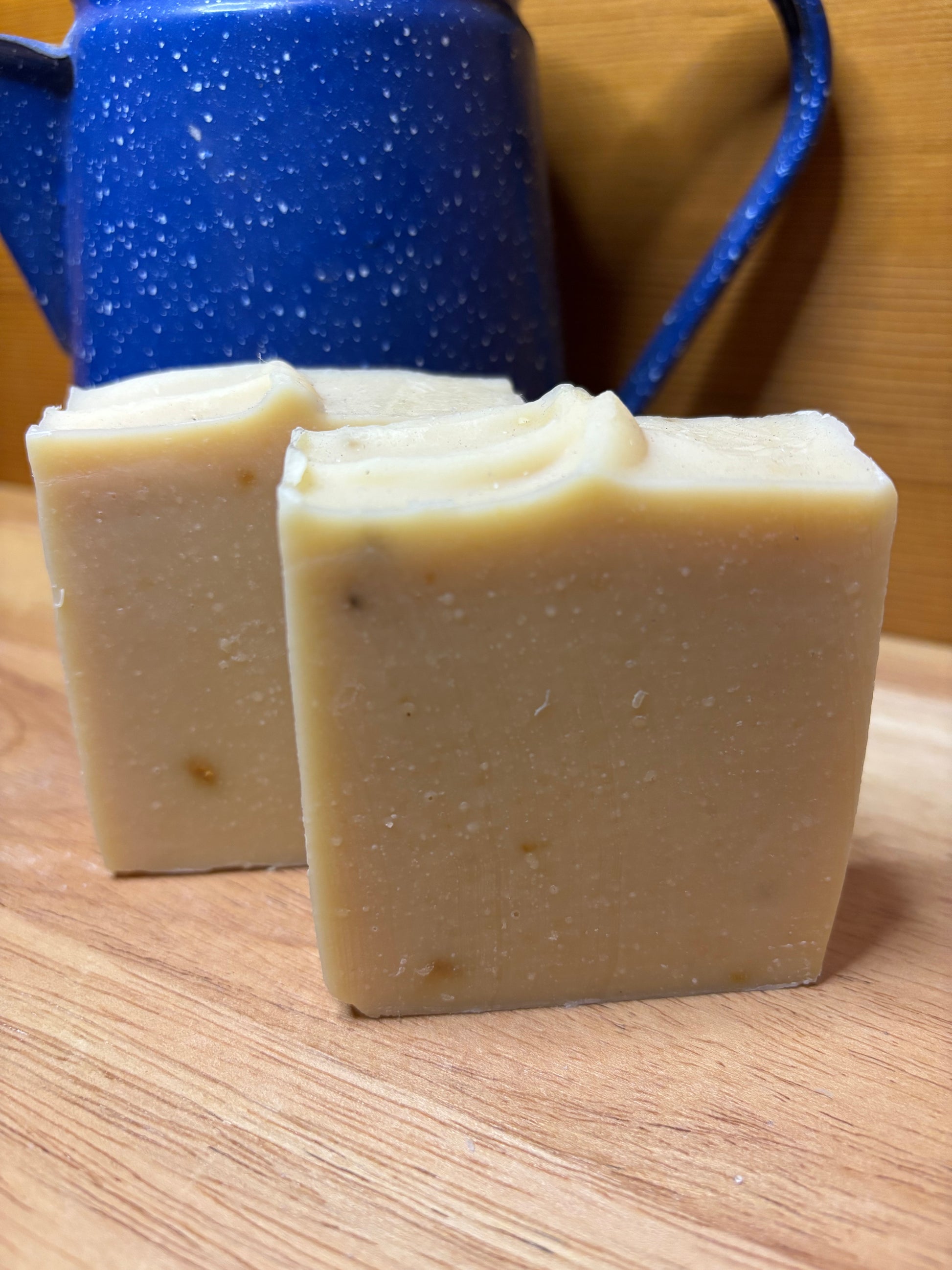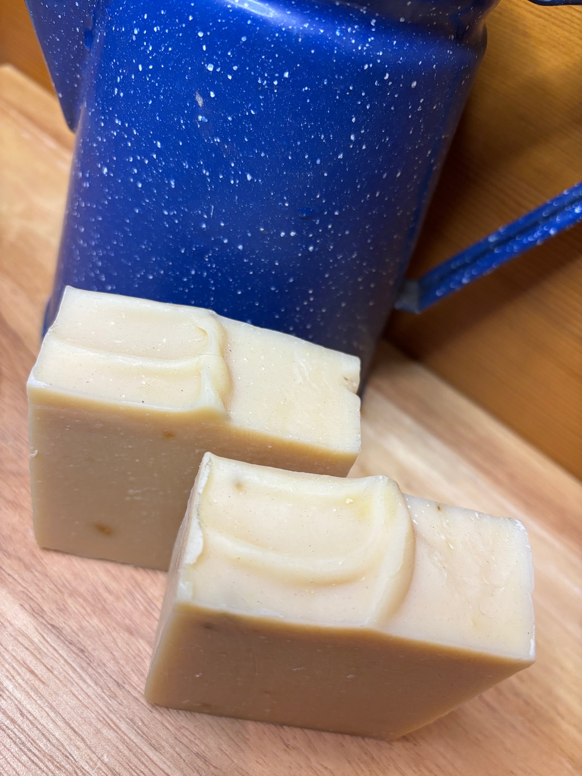 Made with nourishing goats' milk from my Mama Goats- Bubbles & Ginger*. Goats milk is naturally Homogenized and has smaller fat globules making it more easily digestible by all mammals... but that's not where the benefits end. (I'm not a dermatologist)